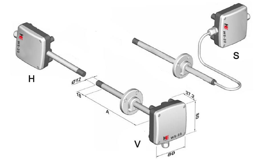 WS-20风速变送器(风速传感器)根据应用场合的不同设计了多种安装方式结构,用户选择合适的安装方式结构,可以方便地将变送器固定在被测气流位置,以获得稳定的信号输出。此外,我们也提供可定制长度的探杆和线缆。